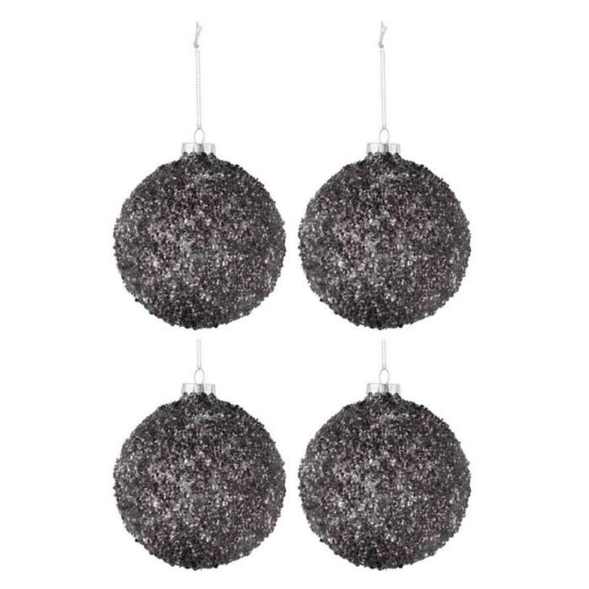 Lot de 4 Boules de Noël Paillettes 10cm Anthracite