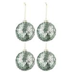 Informations Techniques : Dimensions : D. 10 x H. 10 cm Matière : Verre Spécificités : Pratique & Chic Lot de 4 Boules de Noël Forme Ronde Design Paillettes Poids : 0,061 kg Couleur : Vert Menthe