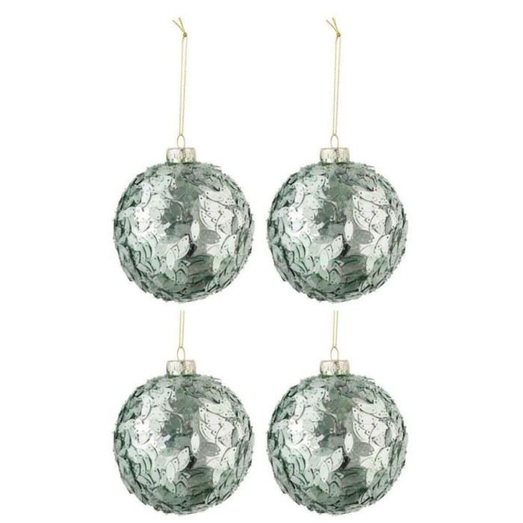 Lot de 4 Boules de Noël Paillettes 10cm Vert Menthe