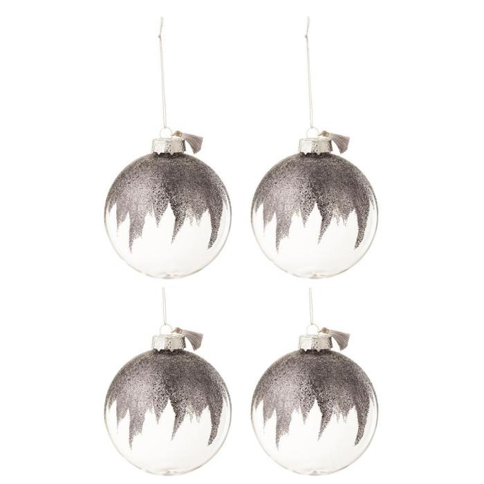 Lot de 4 Boules de Noël Paillettes 12cm Gris