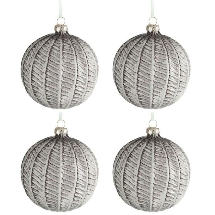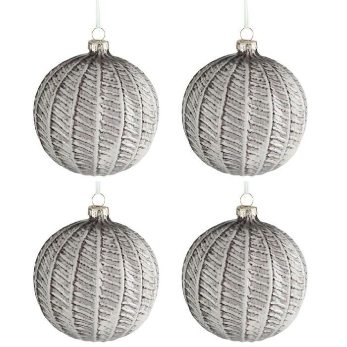 Lot de 4 Boules de Noël Ronde Imprimé 10cm Gris