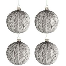 Informations Techniques : Dimensions : D. 9,6 x H. 10 cm Matière : Verre Spécificités : Pratique & Utile Lot de 4 Boules de Noël Forme Ronde Design Imprimé Poids : 0,047 kg Couleur : Gris