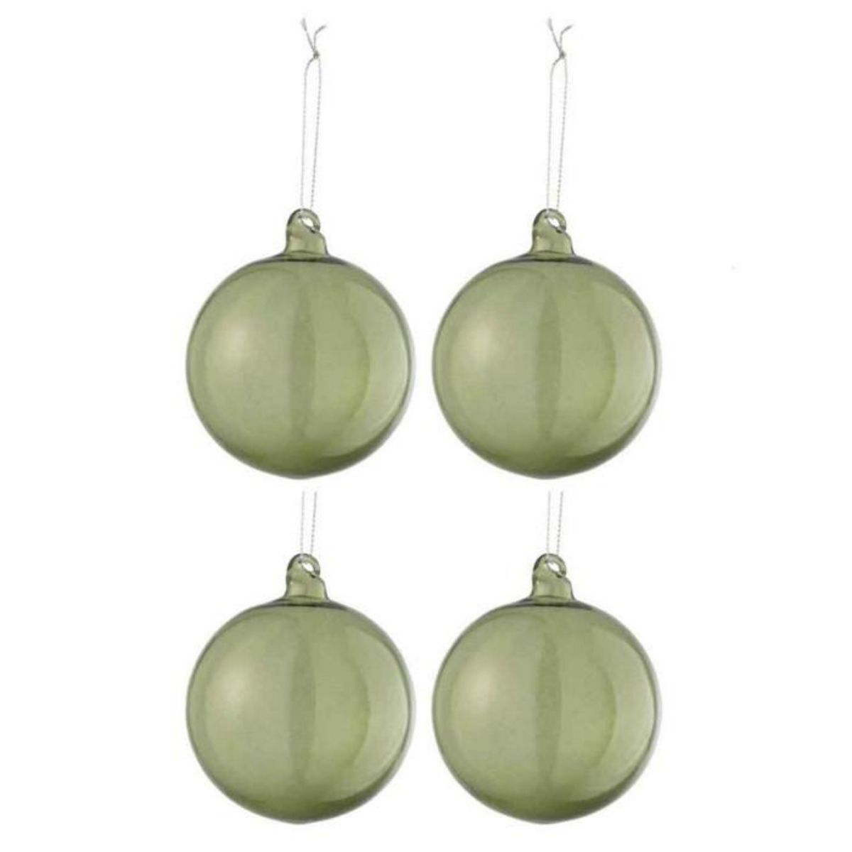 Lot de 4 Boules de Noël Verre Épais 10cm Transparent & Vert