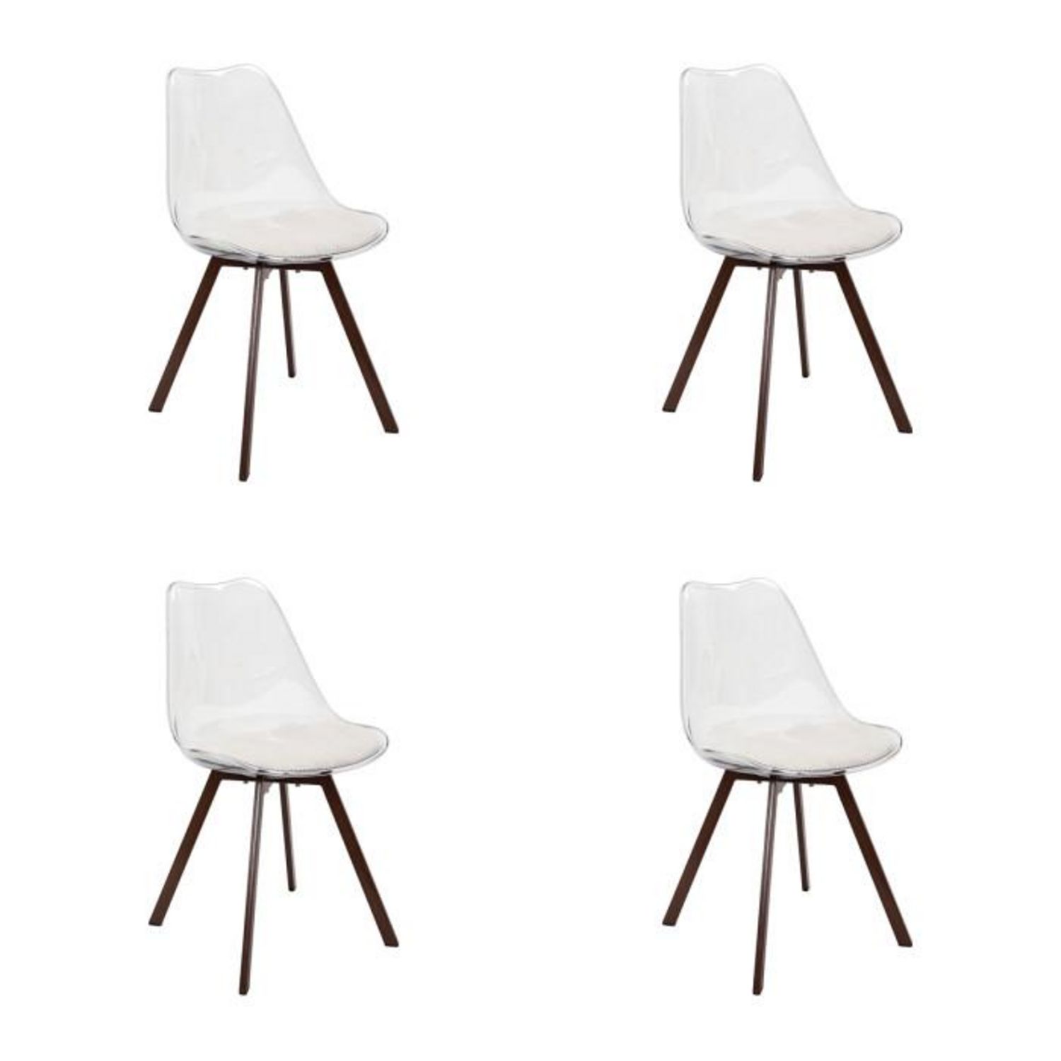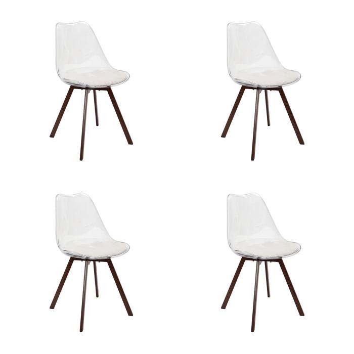 Lot de 4 Chaises Coussin Côtelé Scott 82cm Transparent & Beige