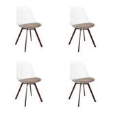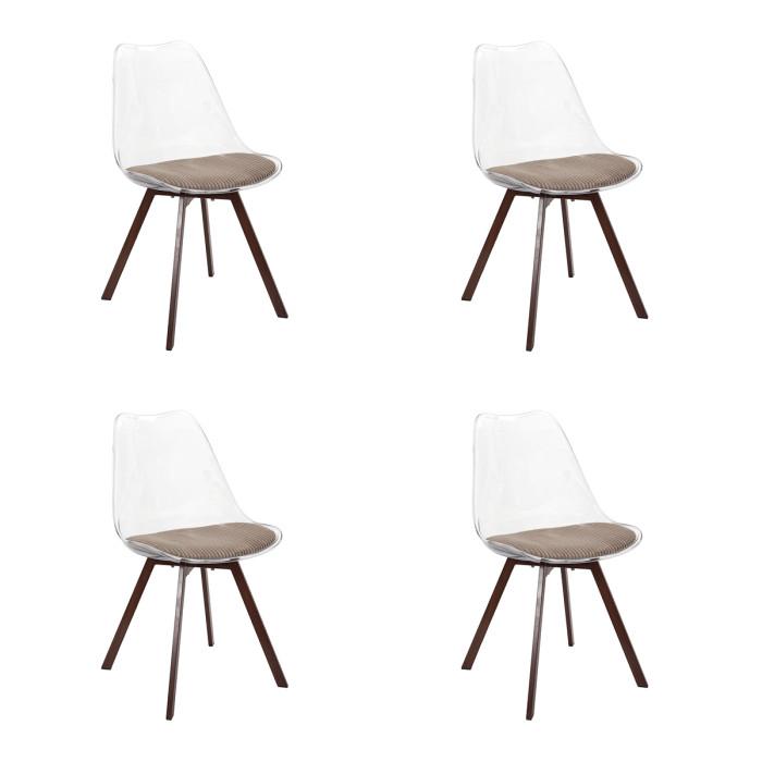 Lot de 4 Chaises Coussin Côtelé Scott 82cm Transparent & Taupe