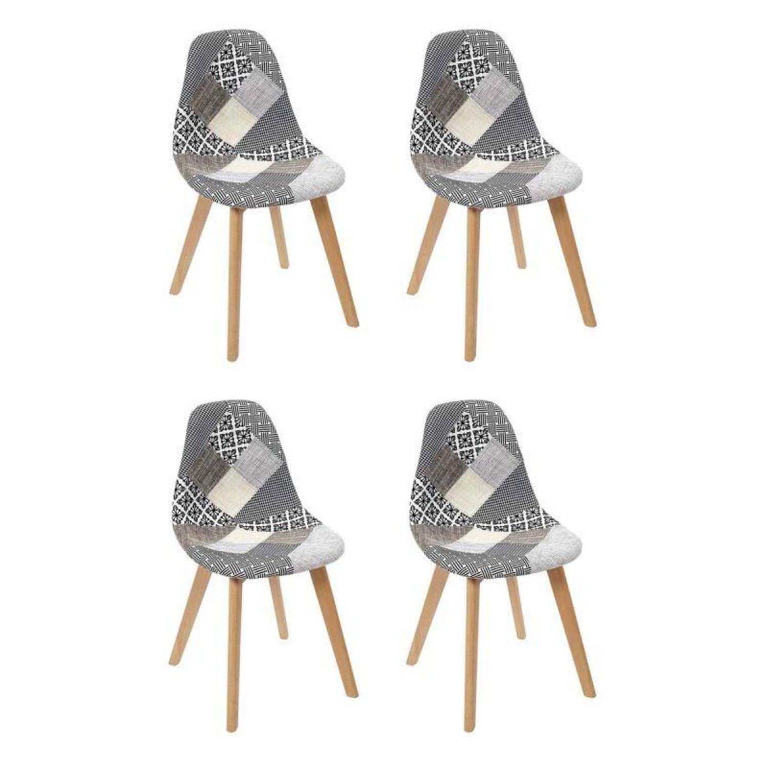 Lot de 4 Chaises Design Patchwork 86cm Gris