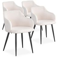 Informations Techniques : Dimensions : L. 53,5 x l. 57 x H. 79,5 cm Assise : L. 45 x l. 53 x H. 47 cm Matières : Revêtement : Tissu Structure & Piètement : Métal & Plastique Spécificités : Doux & Moderne Lot de 4 chaises design Assise rembourrée Avec accoudoirs Dossier incurvé Tissu bouclette Char