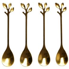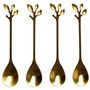 Lot de 4 Cuillères à Café Feuille 11cm Or