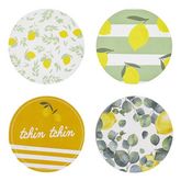 Informations Techniques : Dimensions : D. 10 x H. 0,5 cm Matière : 100% MDF Spécificités : Déco & Utile Lot de 4 dessous de verre Imprimé citron Forme ronde Poids : 0,1 kg Couleur : Vert & Jaune