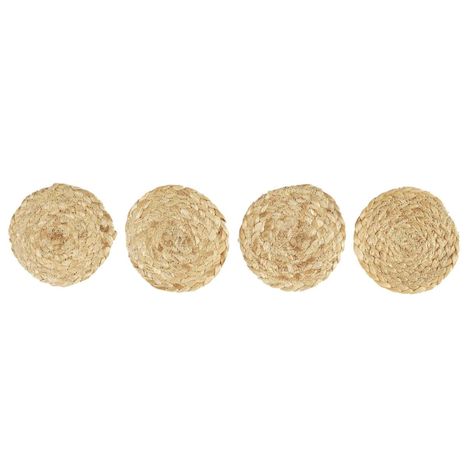 Lot de 4 Dessous de Verre en Jute Rond 10cm Naturel