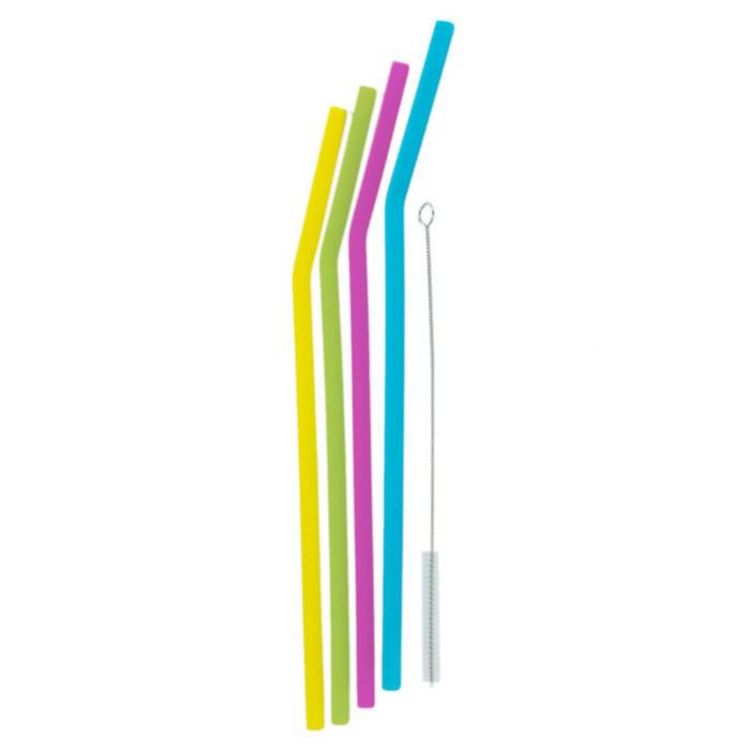 Lot de 4 Pailles & Goupillon Silicone 28cm Multicolore