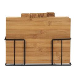 Informations Techniques : Dimensions : L. 29 x l. 8 x H. 24 cm Matières : Bambou & Métal Spécificités : Pratique & Utile Lot de 4 Planches à Découper Avec Socle en Métal Facile d'Utilisation Poids : 1,508 kg Couleur : Naturel & Noir