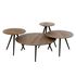 Informations Techniques : Dimensions : Taille 1 : L. 30 x l. 30 x H. 45 cm Taille 2 : L. 40 x l. 40 x H. 40 cm Taille 3 : L. 50 x l. 50 x H. 35 cm Taille 4 : L. 70 x l. 70 x H. 30 cm Matières : 30% Bois (Recyclé), 30% MDF & 40% Métal Spécificités : Élégant & Naturel Lot de 4 tables basses Forme ron