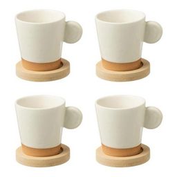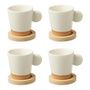 Informations Techniques : Dimensions : L. 8 x l. 6 x H. 6,5 cm Matière : Céramique & Bambou Spécificités : Pratique & Utile Lot de 4 tasses à café Avec dessous de verre Imprimé moucheté Compatibilités : Lave-vaisselle et micro-ondes Capacité : 7,5 cl Poids : 0,59 kg Couleur : Blanc
