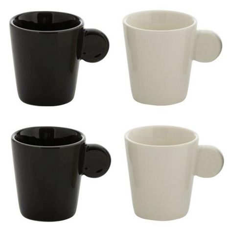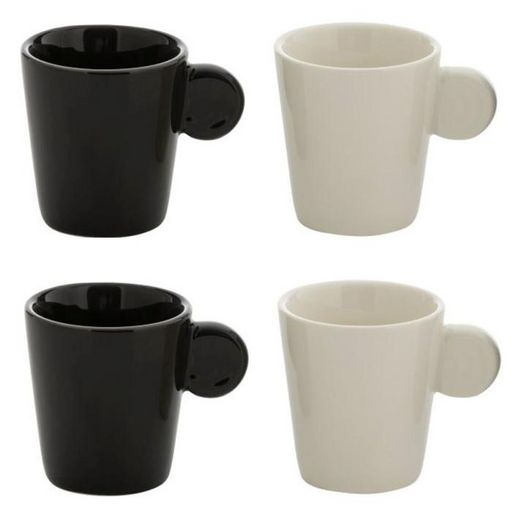 Informations Techniques : Dimensions : L. 8 x l. 6 x H. 6,5 cm Matière : 100% Céramique Spécificités : Pratique & Utile Lot de 4 tasses à café Compatibilités : Lave-vaisselle et micro-ondes Capacité : 7,5 cl Poids : 0,51 kg Couleur : Noir & Blanc