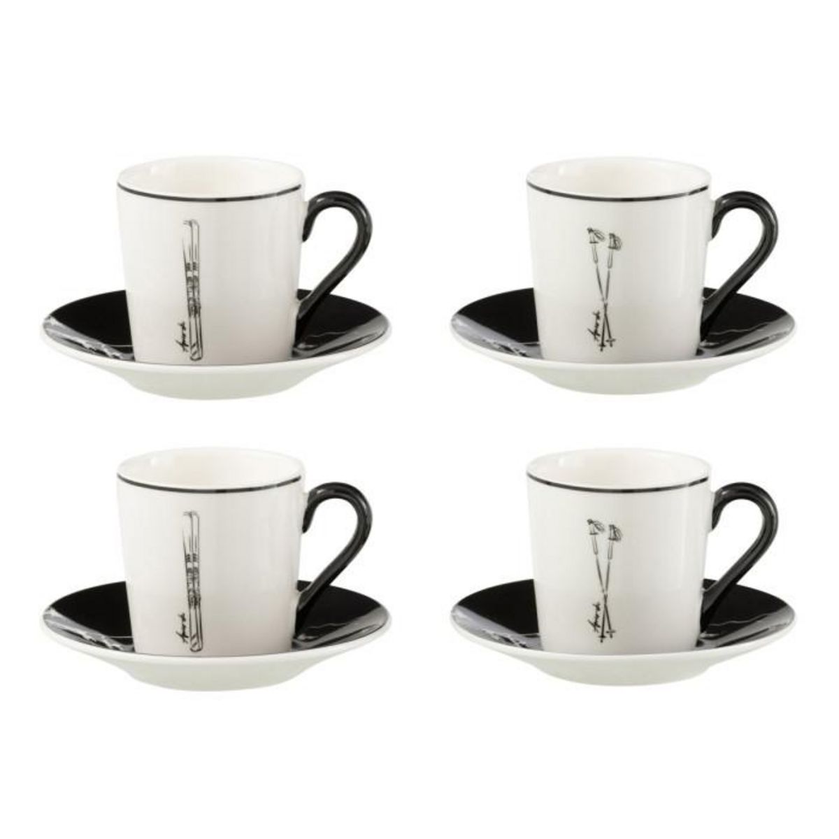 Lot de 4 Tasses à Café & Sous-Tasses Après-Ski 8cl Blanc