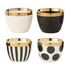 Informations Techniques : Dimensions : L. 8,2 x l. 8,2 x H. 6,4 cm Matière : 100% Céramique Spécificités : Pratique & Chic Lot de 4 tasses Design bicolore Imprimé pois et rayures Liserés dorés Contenance : 18 cl Poids : 0,14 kg Couleur : Multicolore
