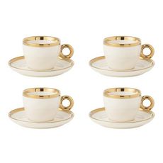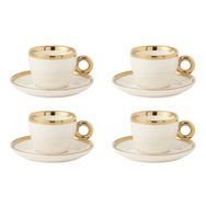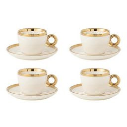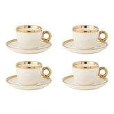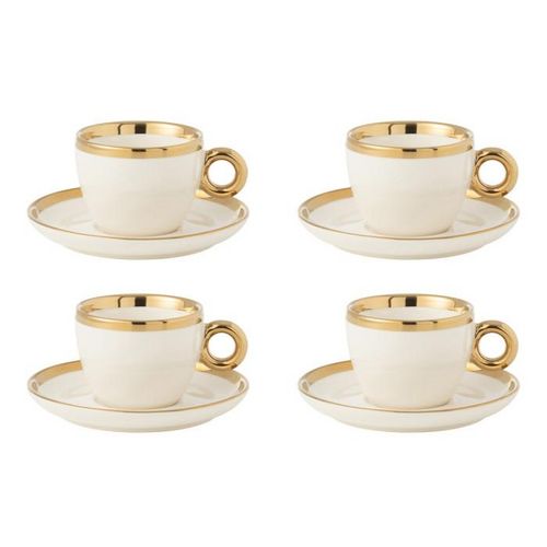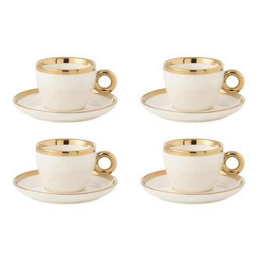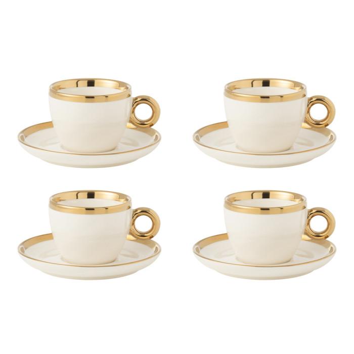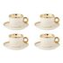 Lot de 4 Tasses & Sous-Tasses Faye 18cl Blanc & Or