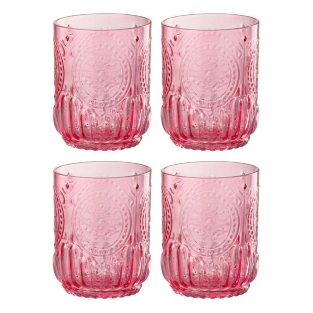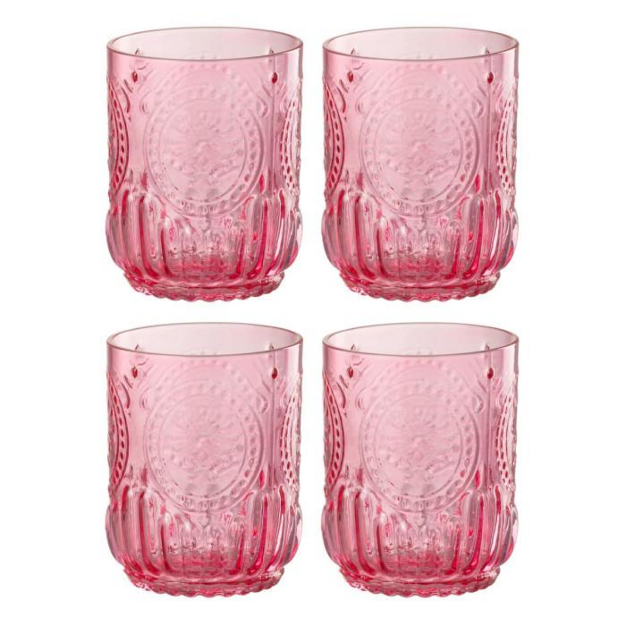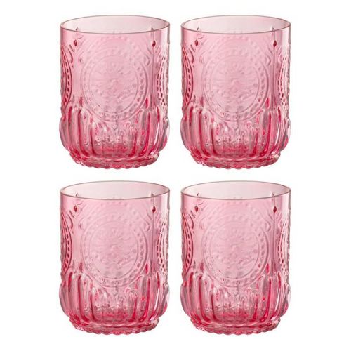 Informations Techniques : Dimensions : D. 7 x H. 9 cm Matière : 100% Verre Spécificités : Pratique & Utile Lot de 4 verres Motifs en relief Capacité : 32 cl Poids : 0,48 kg Couleur : Fuchsia