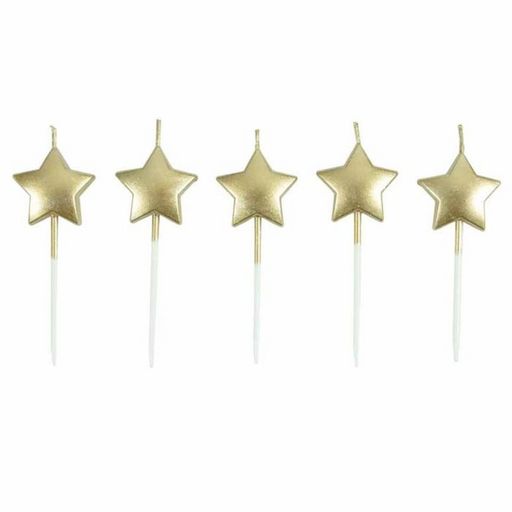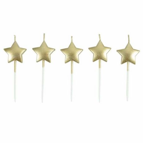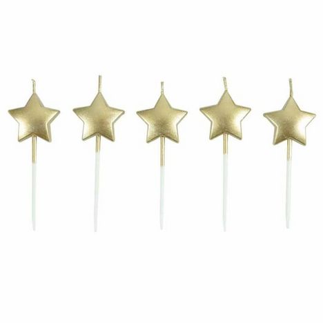 Lot de 5 Bougies 3D Étoile 7cm Or