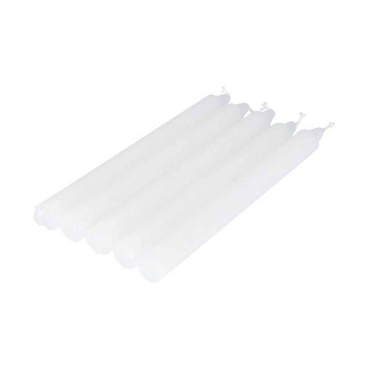 Informations Techniques : Dimensions : D. 2,1 x H. 19,6 cm Matière : Paraffine Spécificités : Déco & Tendance Lot de 5 bougies chandelier Non parfumées Forme ronde Poids : 0,2 kg Couleur : Blanc