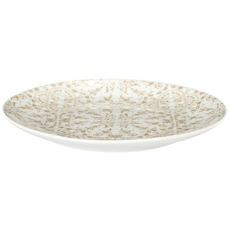 Informations Techniques : Dimensions : D. 19 x H. 2,2 cm Matière : 100% Porcelaine Spécificités : Élégant & Design Lot de 6 assiettes à dessert Imprimé faience Forme ronde Compatible : Lave-vaisselle, Micro-ondes, Four & Congélateur Poids : 0,38 kg (à l'unité) Couleur : Blanc & Taupe