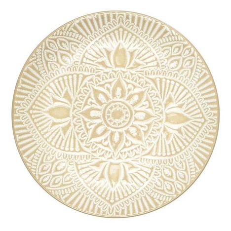 Informations Techniques : Dimensions : D. 19,5 x H. 2,4 cm Matière : 100% Grès Spécificités : Design & Utile Lot de 6 assiettes à dessert Imprimé mandala Forme ronde Compatibles : Lave-vaisselle, micro-ondes et congélateur Poids : 0,37 kg (à l'unité) Couleur : Beige