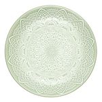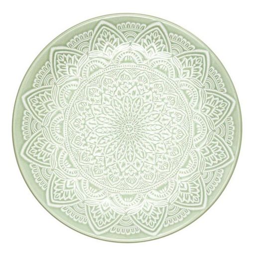 Informations Techniques : Dimensions : D. 19,5 x H. 2,4 cm Matière : 100% Grès Spécificités : Design & Utile Lot de 6 assiettes à dessert Imprimé mandala Forme ronde Compatibles : Lave-vaisselle, micro-ondes et congélateur Poids : 0,37 kg (à l'unité) Couleur : Vert