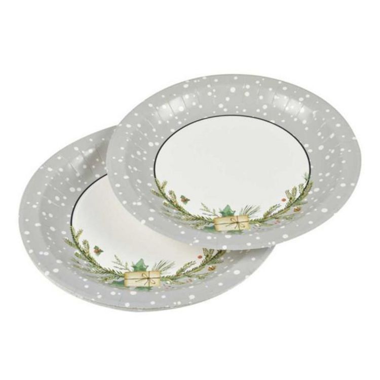 Lot de 6 Assiettes en Carton Branche Sapin 23cm Gris