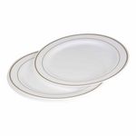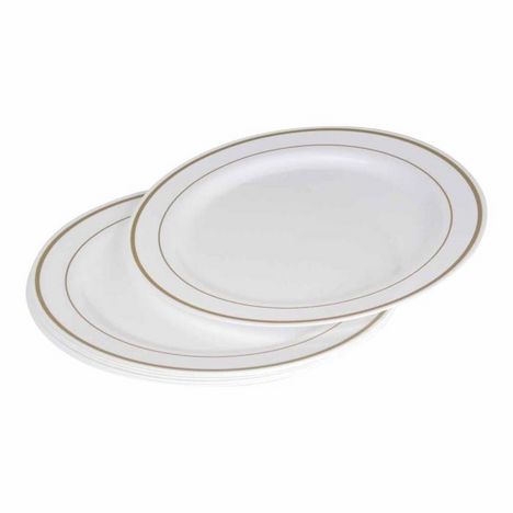 Lot de 6 Assiettes en Plastique Réutilisable Liseré 23cm Blanc & Or