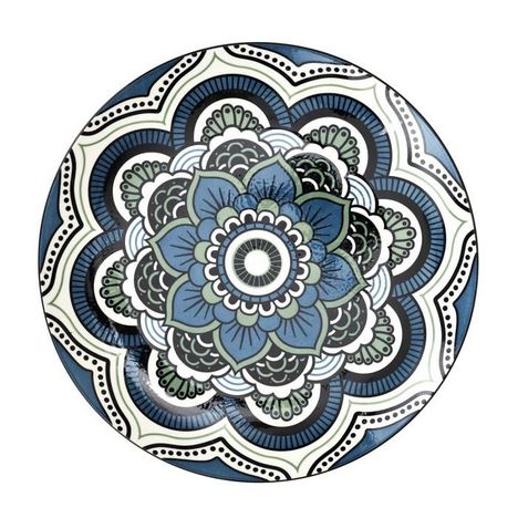 Informations Techniques : Dimensions : D. 26,5 x H. 2,6 cm Matières : Céramique & Porcelaine Spécificités : Tendance & Design Lot de 6 Assiettes Plates Forme Ronde Motif Mandala Poids : 0,73 kg Couleur : Bleu