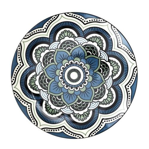Lot de 6 Assiettes Plates Mandala 26cm Bleu