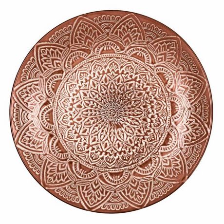 Informations Techniques : Dimensions : D. 27 x H. 2,8 cm Matière : 100% Grès Spécificités : Design & Utile Lot de 6 assiettes plates Imprimé mandala Forme ronde Compatibles : Lave-vaisselle, micro-ondes et congélateur Poids : 0,8 kg (à l'unité) Couleur : Terracotta