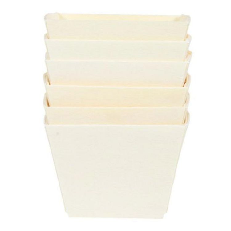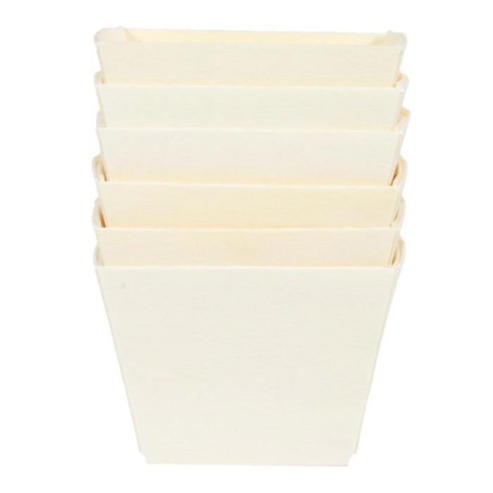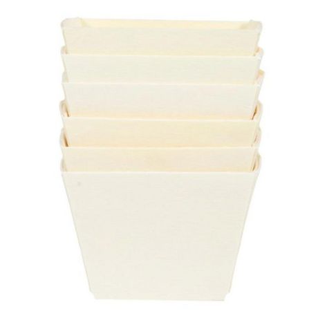 Informations Techniques : Dimensions : L. 7 x l. 7 x H. 5,5 cm Matière : Bois (Pin) Spécificités : Pratique & Utile Lot de 6 Barquettes de Présentation Forme Carrée Spécial Snacking Poids : 0,01 kg Couleur : Naturel