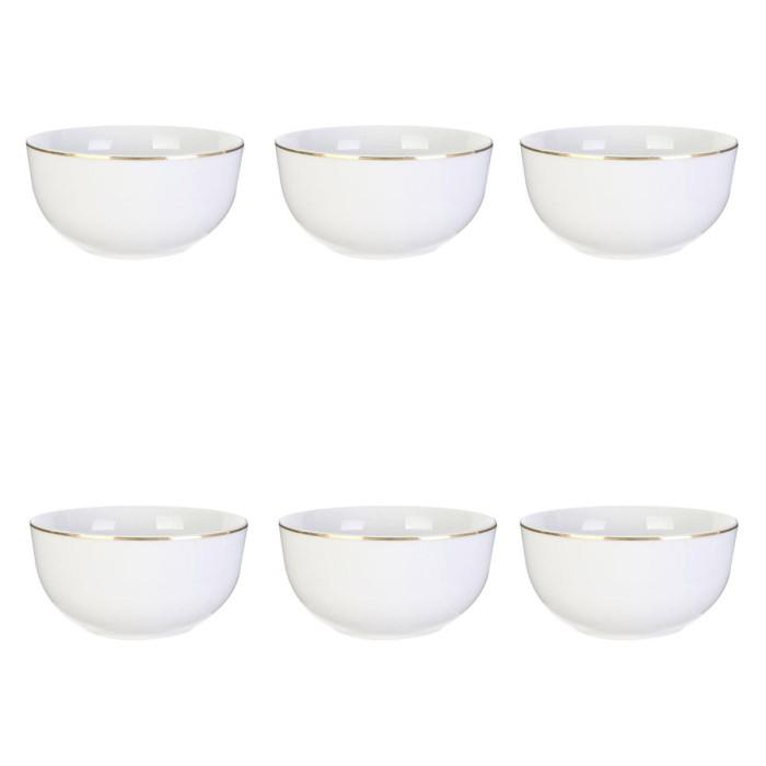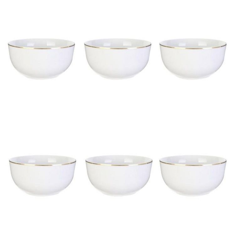 Lot de 6 Bols Déco Liseré Doré 14cm Blanc