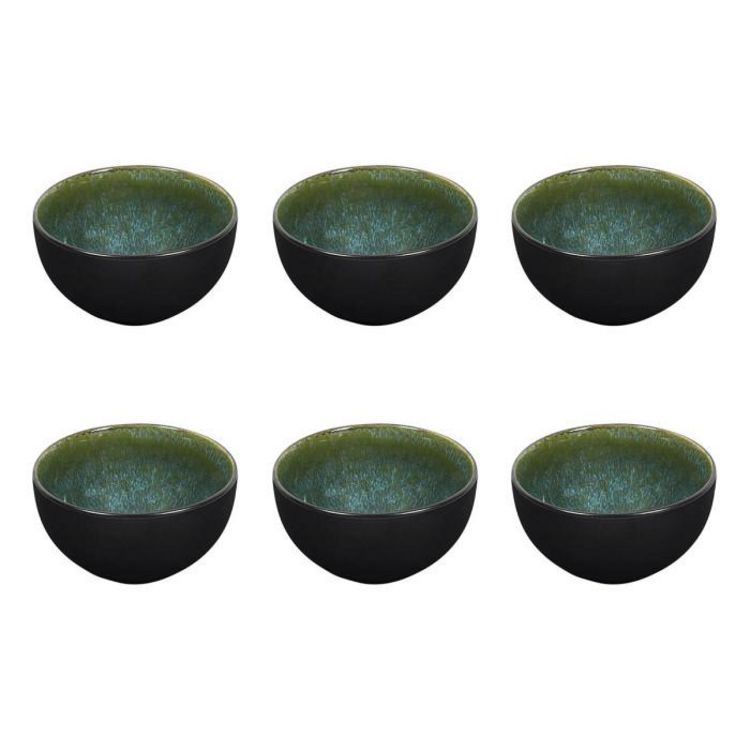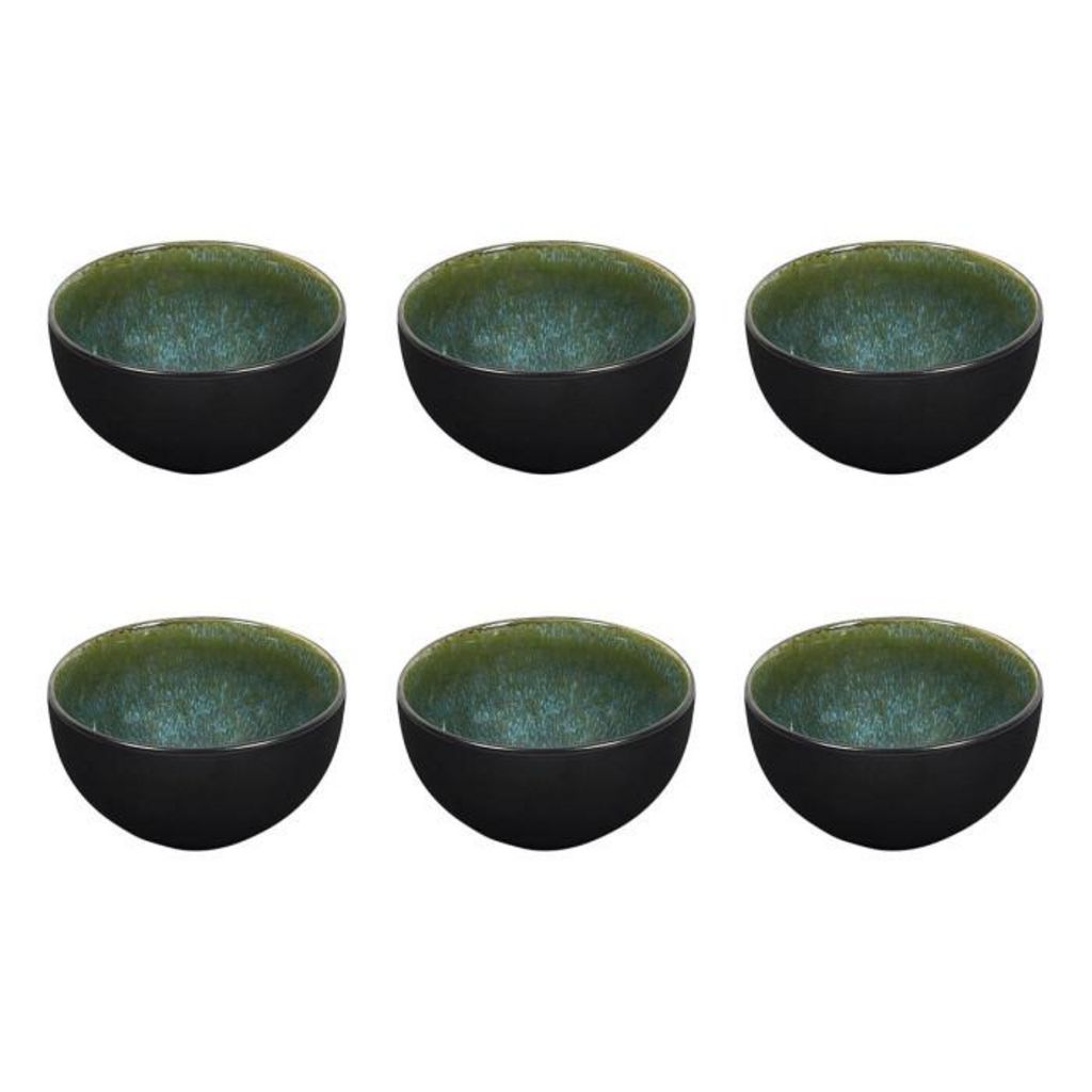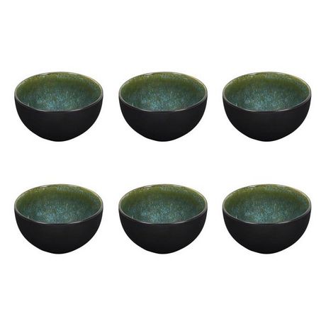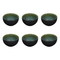 Informations Techniques : Dimensions : D. 13,8 x H. 7,4 cm Matière : 100% Grès Spécificités : Élégant & Utile Lot de 6 bols Imprimé peinture Liseré noir Forme ronde Capacité : 66 cl Compatibles : Lave-vaisselle, micro-ondes et congélateur Poids : 0,39 kg (à l'unité) Couleur : Vert & Noir