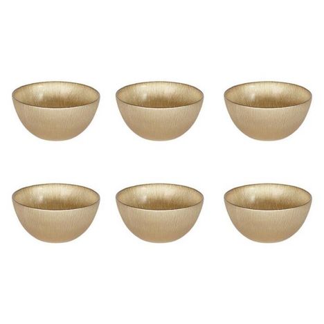 Informations Techniques : Dimensions : D. 15,5 x H. 7,5 cm Matière : Verre Spécificités : Pratique & Utile Lot de 6 Bols Forme Ronde Style Vintage & Rétro Contenance : 70 cl Poids : 0,434 kg Couleur : Or