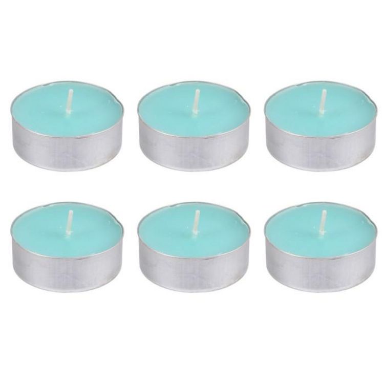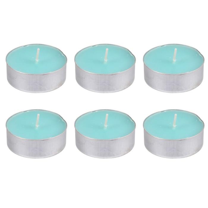 Informations Techniques : Dimensions : D. 5,5 x H. 2 cm Matière : Cire Spécificités : Parfumé & Déco Objets décoratifs Lot de 6 bougies Parfum Embruns Poids : 0,26 kg Couleur : Bleu