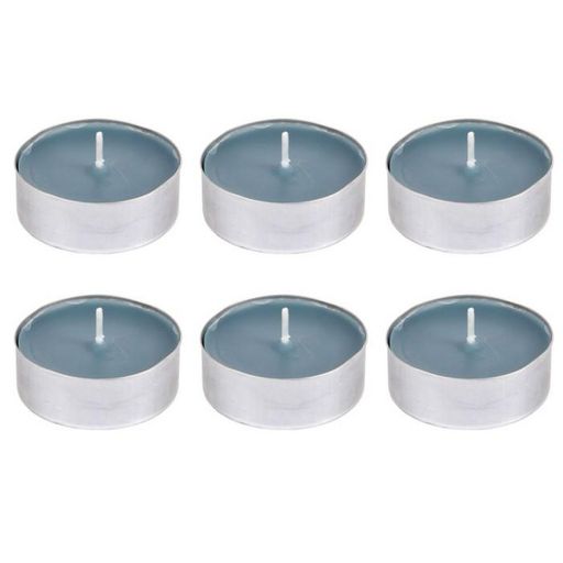 Informations Techniques : Dimensions : D. 5,5 x H. 2 cm Matière : Cire Spécificités : Parfumé & Déco Objets décoratifs Lot de 6 bougies Parfum Patchouli Poids : 0,26 kg Couleur : Bleu