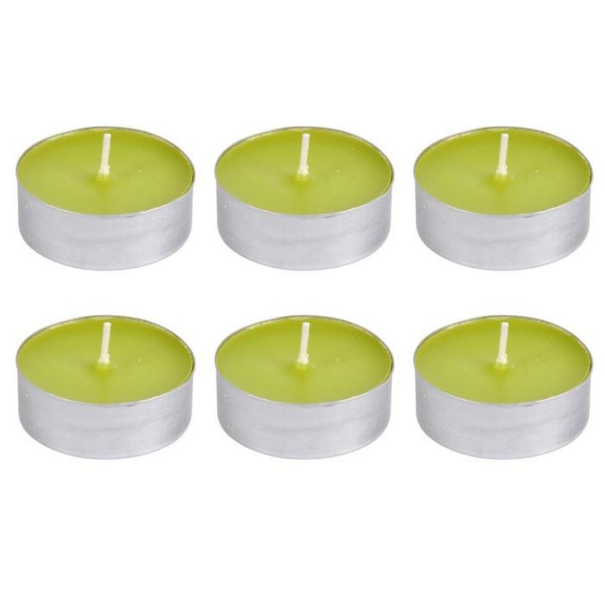 Informations Techniques : Dimensions : D. 5,5 x H. 2 cm Matière : Cire Spécificités : Parfumé & Déco Objets décoratifs Lot de 6 bougies Parfumée à la pomme Poids : 0,26 kg Couleur : Vert