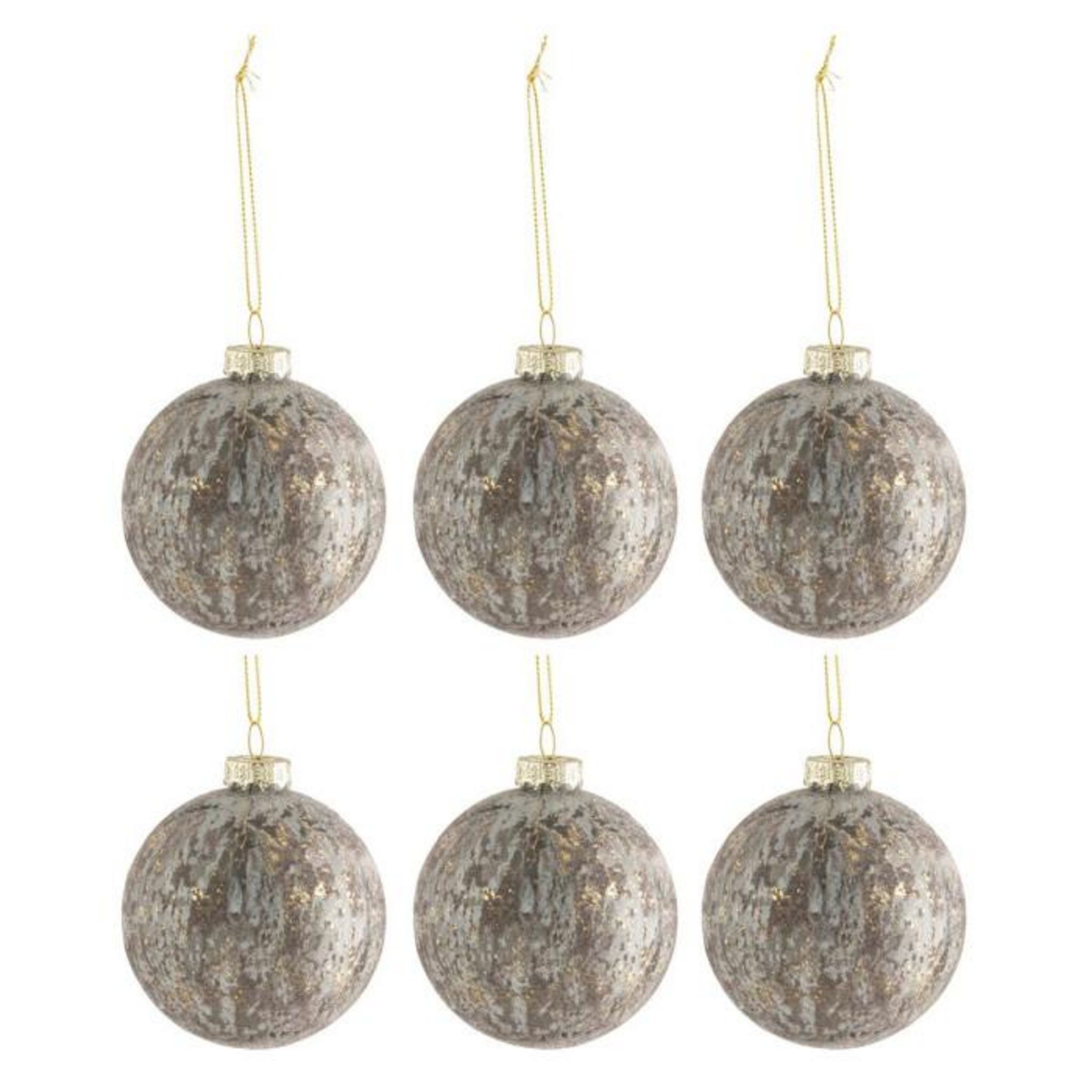 Lot de 6 Boules de Noël Antique 8cm Gris & Or