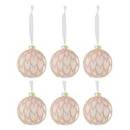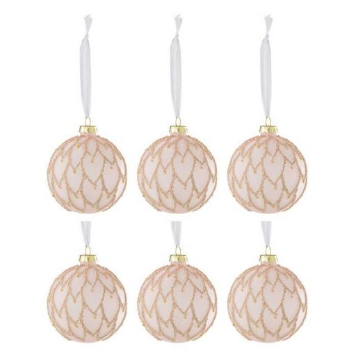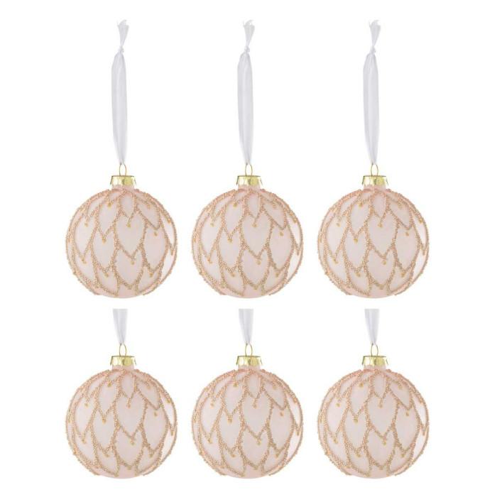 Lot de 6 Boules de Noël Cœurs Perles 8cm Rose