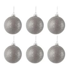 Informations Techniques : Dimensions : D. 8 x H. 8 cm Matière : Verre Spécificités : Tendance & Moderne Lot de 6 Boules de Noël Forme Ronde Facile d'entretien & d'utilisation Poids : 0,022 kg Couleur : Gris