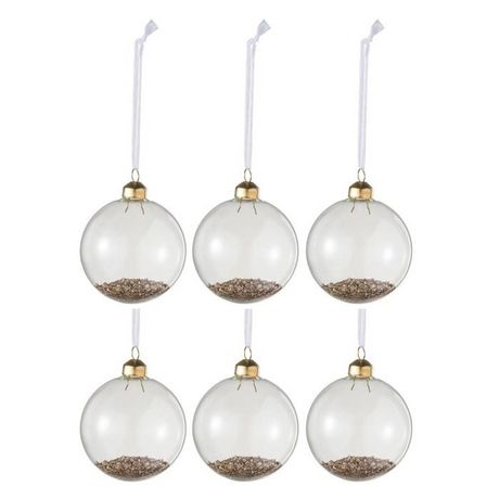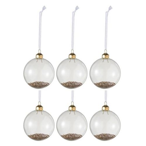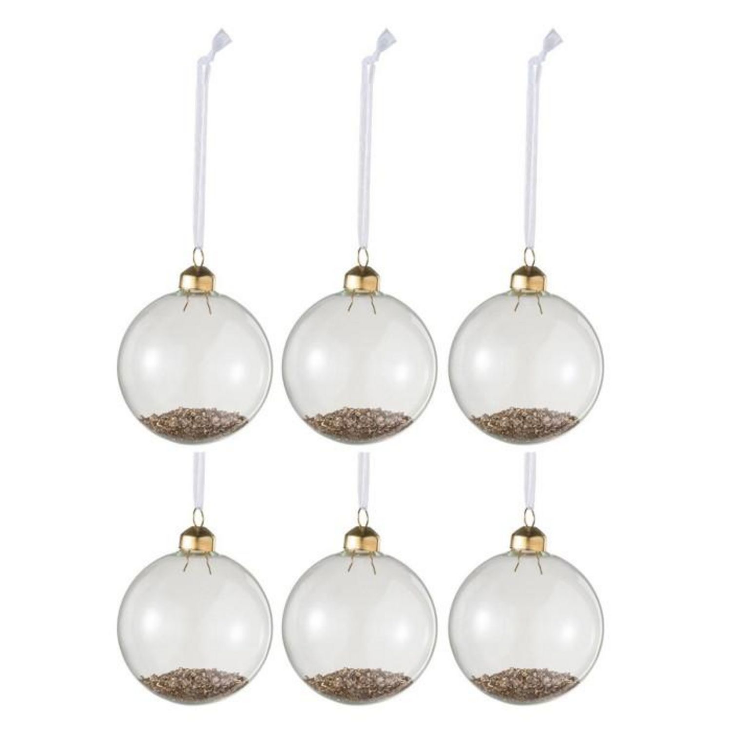 Lot de 6 Boules de Noël en Verre Paillettes Or 8cm Transparent