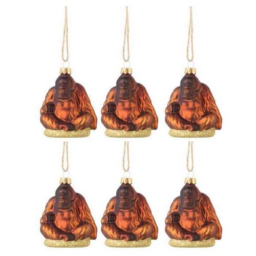 Lot de 6 Boules de Noël Gorille 9cm Marron