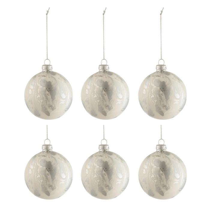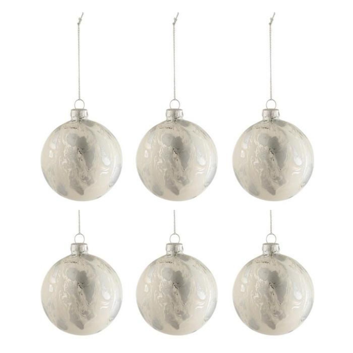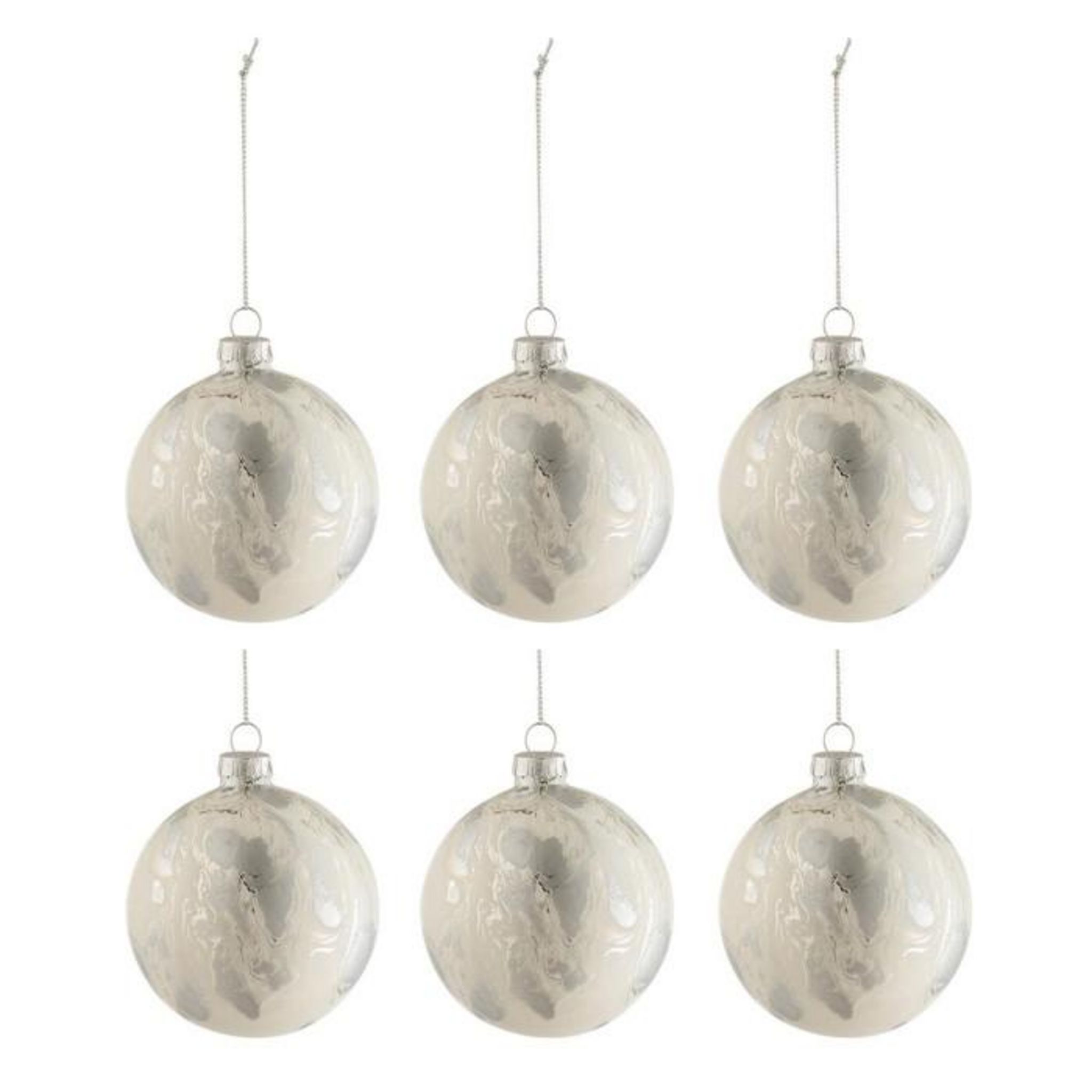 Lot de 6 Boules de Noël Marbre 8cm Blanc