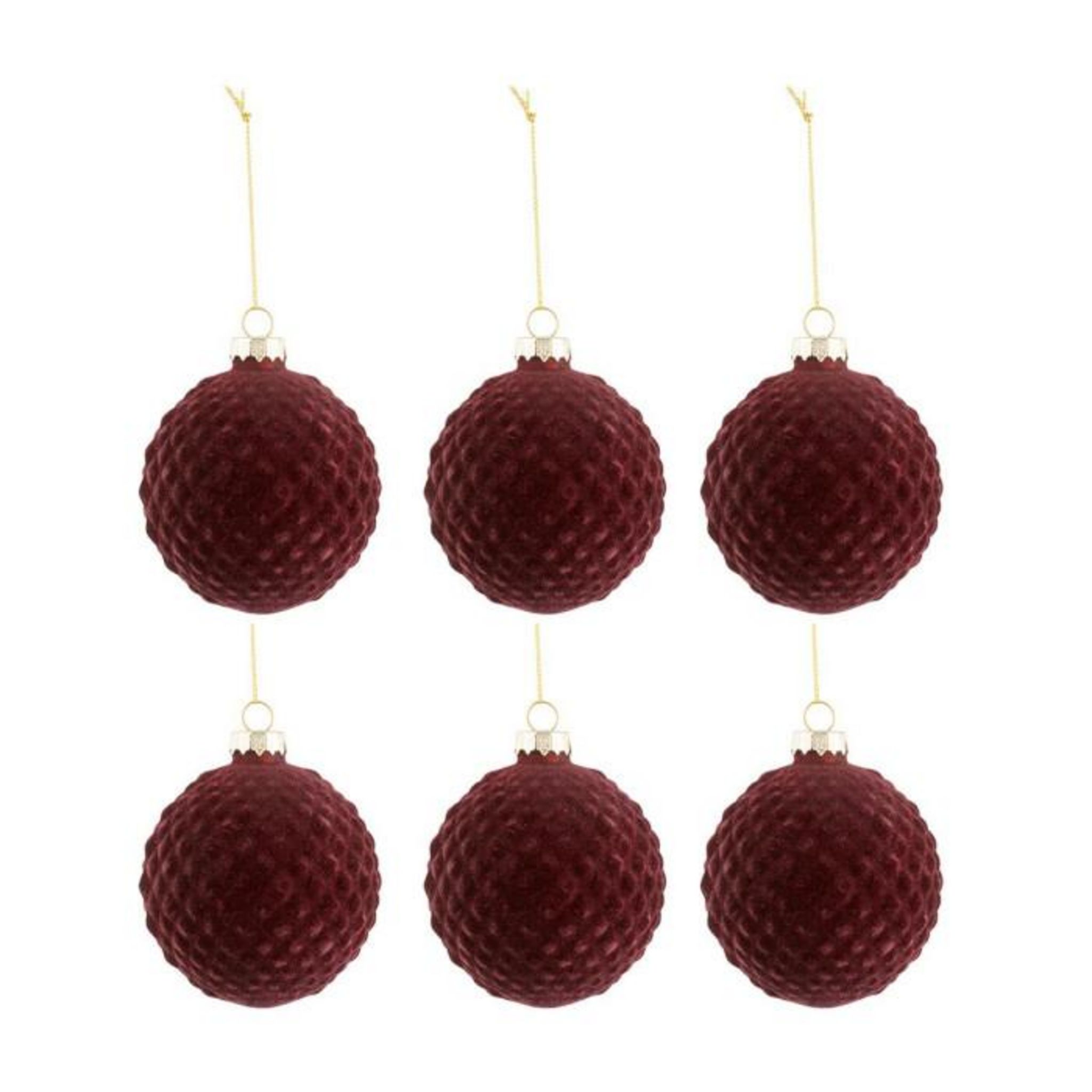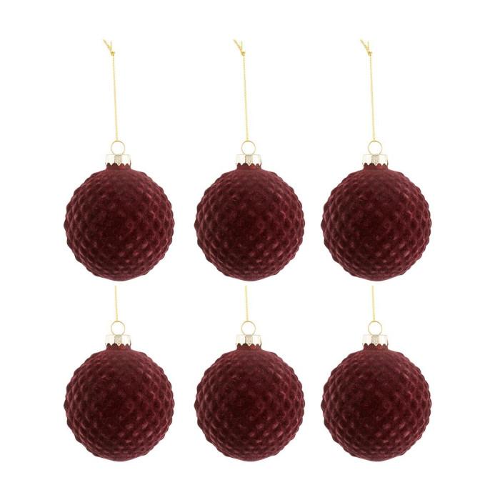 Lot de 6 Boules de Noël Motifs 8cm Bordeaux