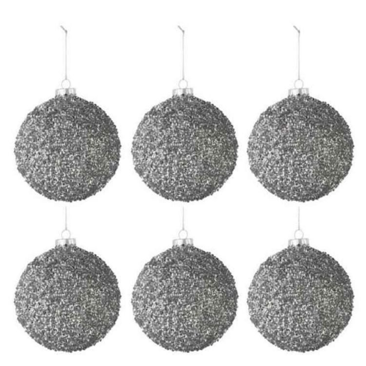 Lot de 6 Boules de Noël Paillettes 8cm Gris Fumé