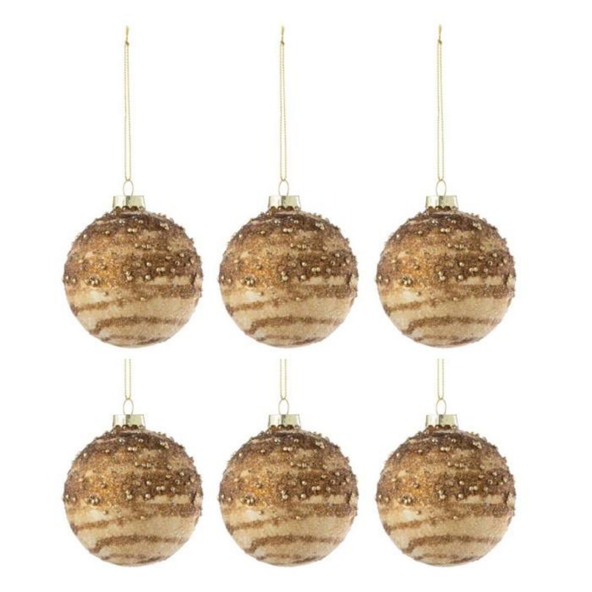 Lot de 6 Boules de Noël Paillettes Line 8cm Marron
