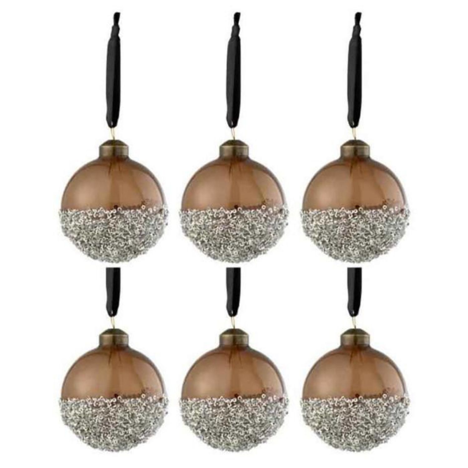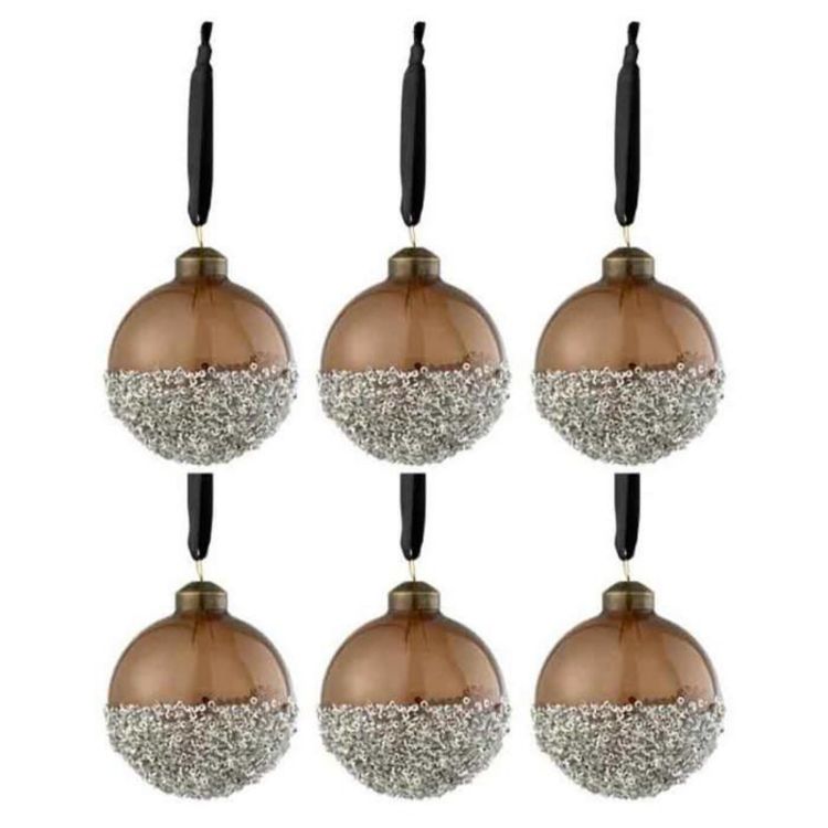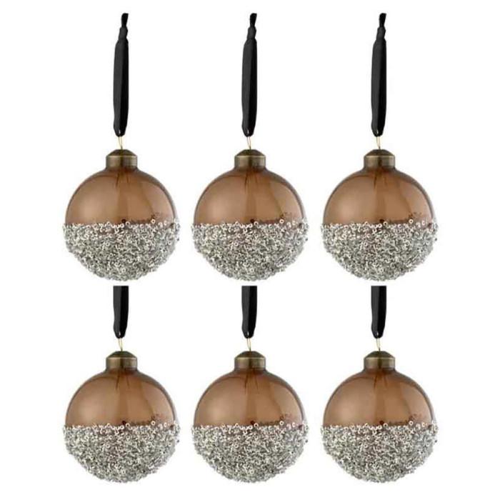 Lot de 6 Boules de Noël Perles 8cm Marron